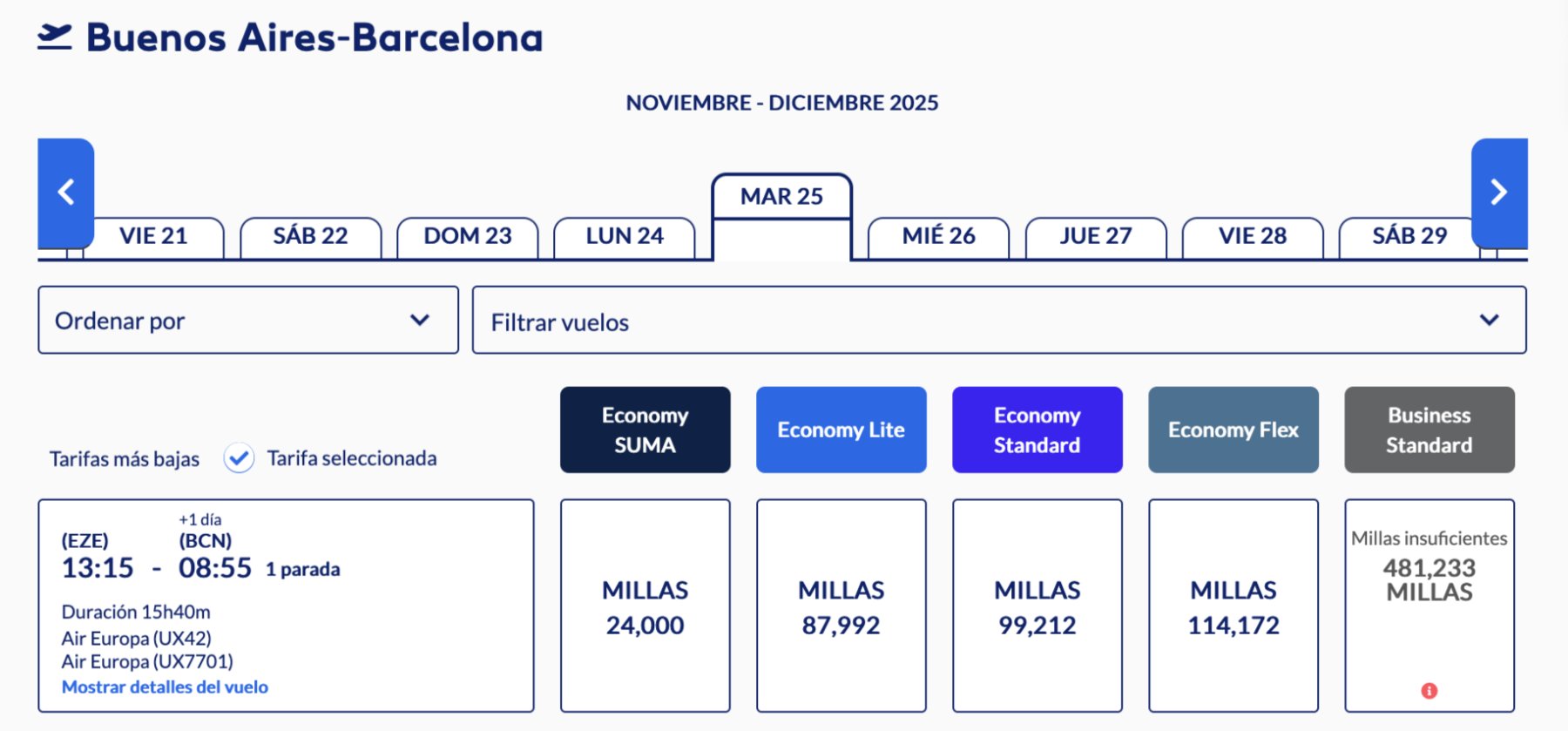 Pude hacer algunas simulaciones entre Argentina y España, que normalmente cuesta 32.000 por trecho y ahora mismo se encuentran por apenas 24.000