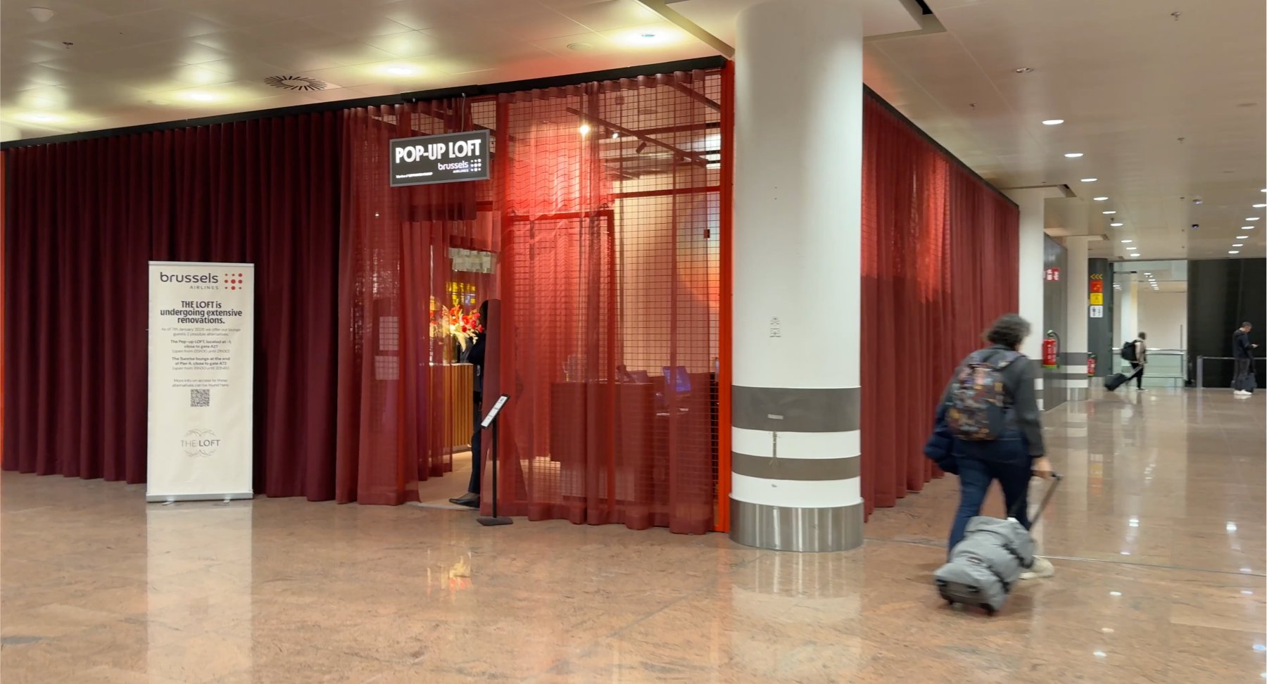 El lounge de Brussels estaba en reformas, por lo que la compañía abrió un pop up lounge en medio de la terminal que es un auténtico espanto.