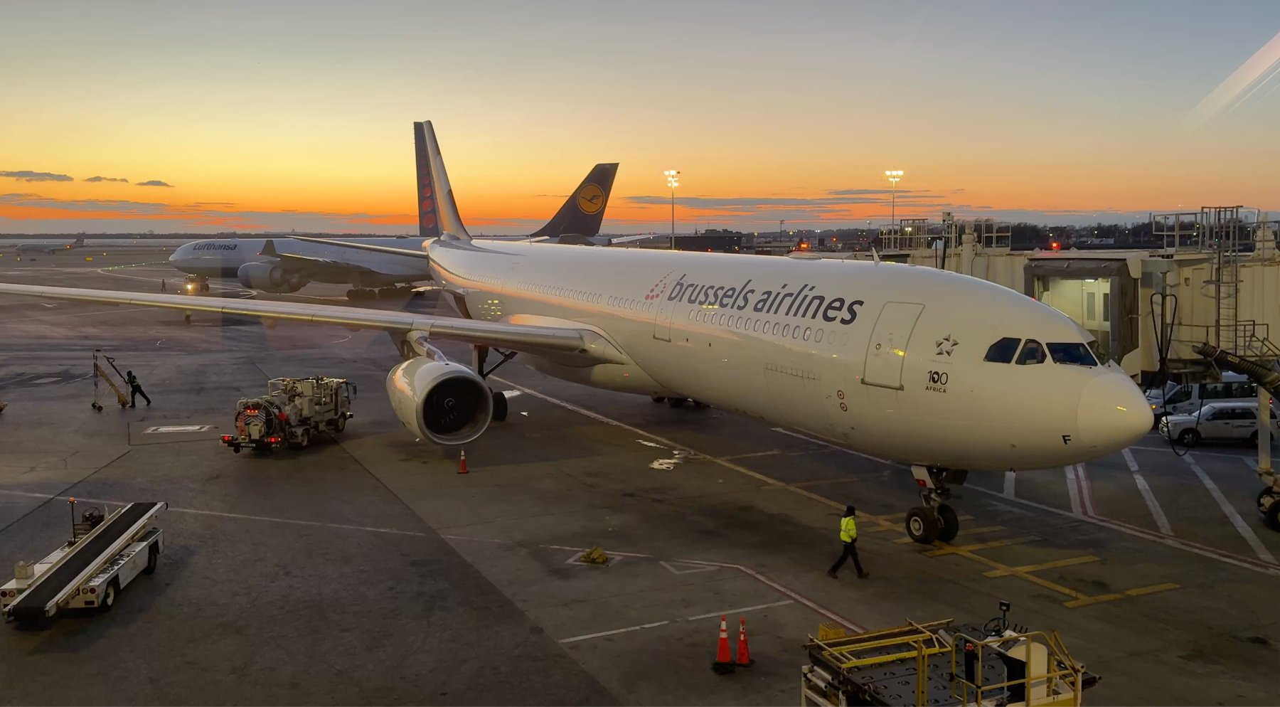 El embarque se realizó sin demoras y la vista del A330 de Brussels Airlines mientras atardecía sobre New York era preciosa.