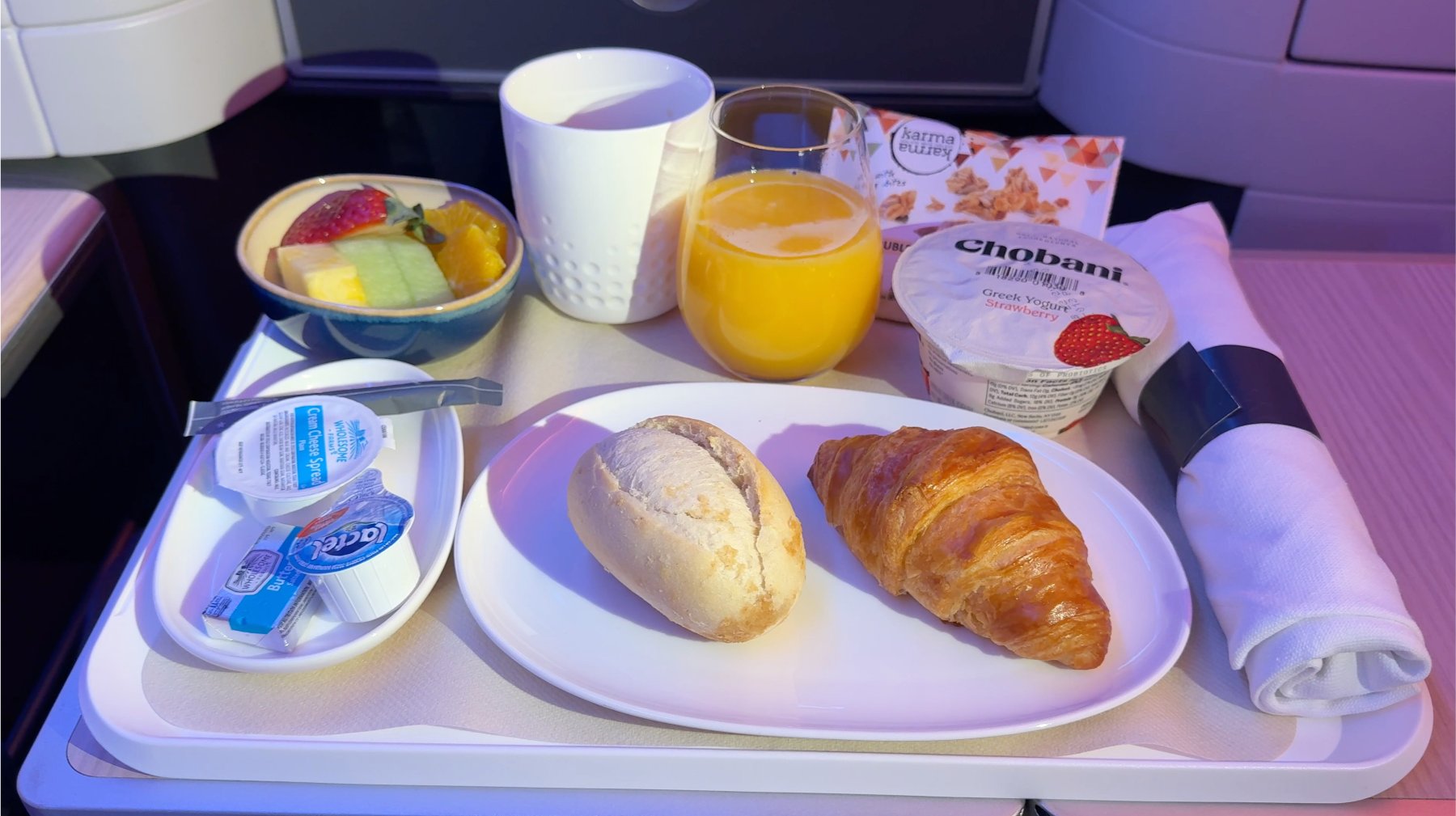 Esto es razonable ya que se trata de un vuelo muy corto, de apenas 6:30hs, que también ofrece un servicio de desayuno antes de aterrizar.