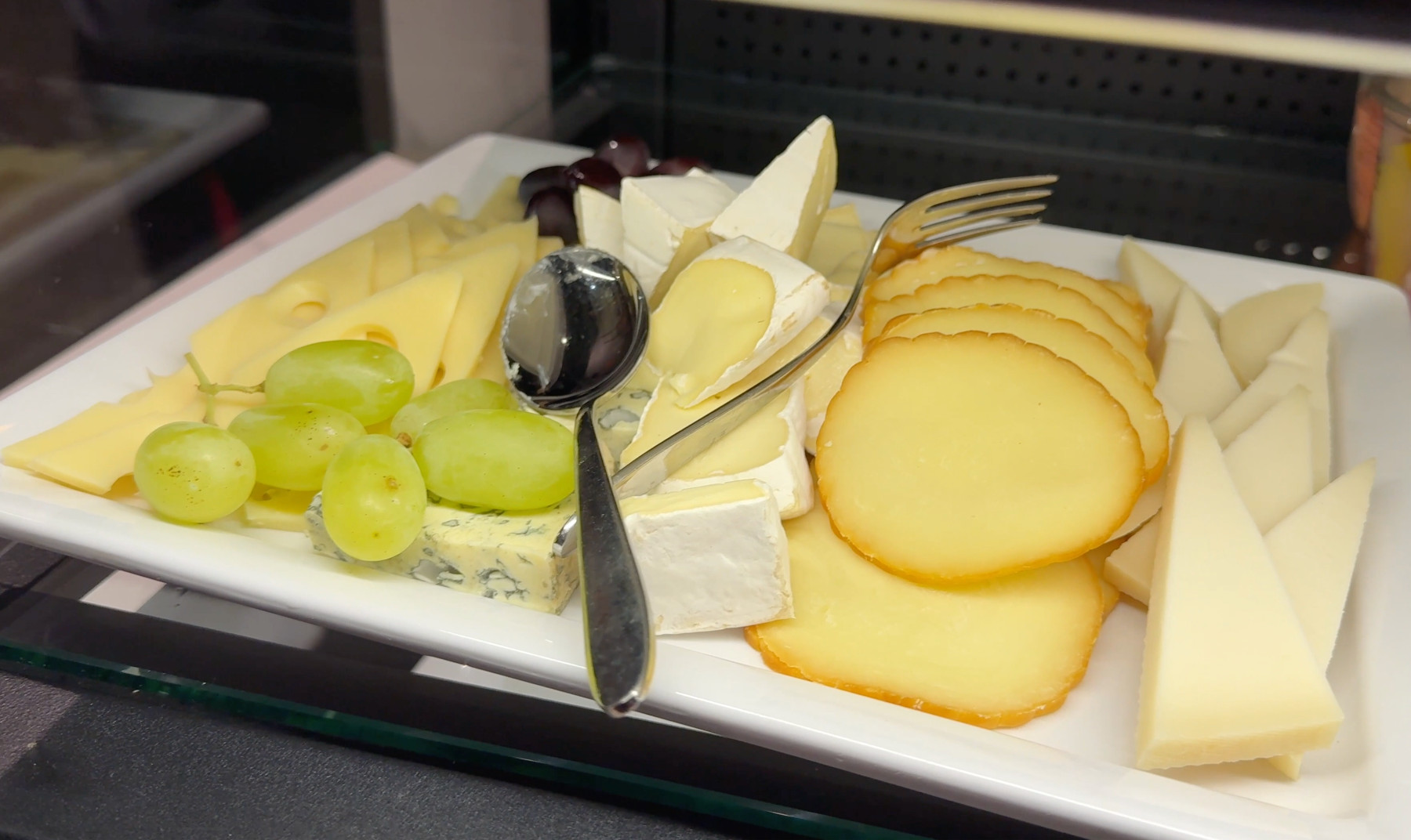 Apenas 8 minutos después del despegue nos fue servido el almuerzo, bastante flojo esta vez apenas con una ensalada y trozos minúsculos de charcutería y quesos.