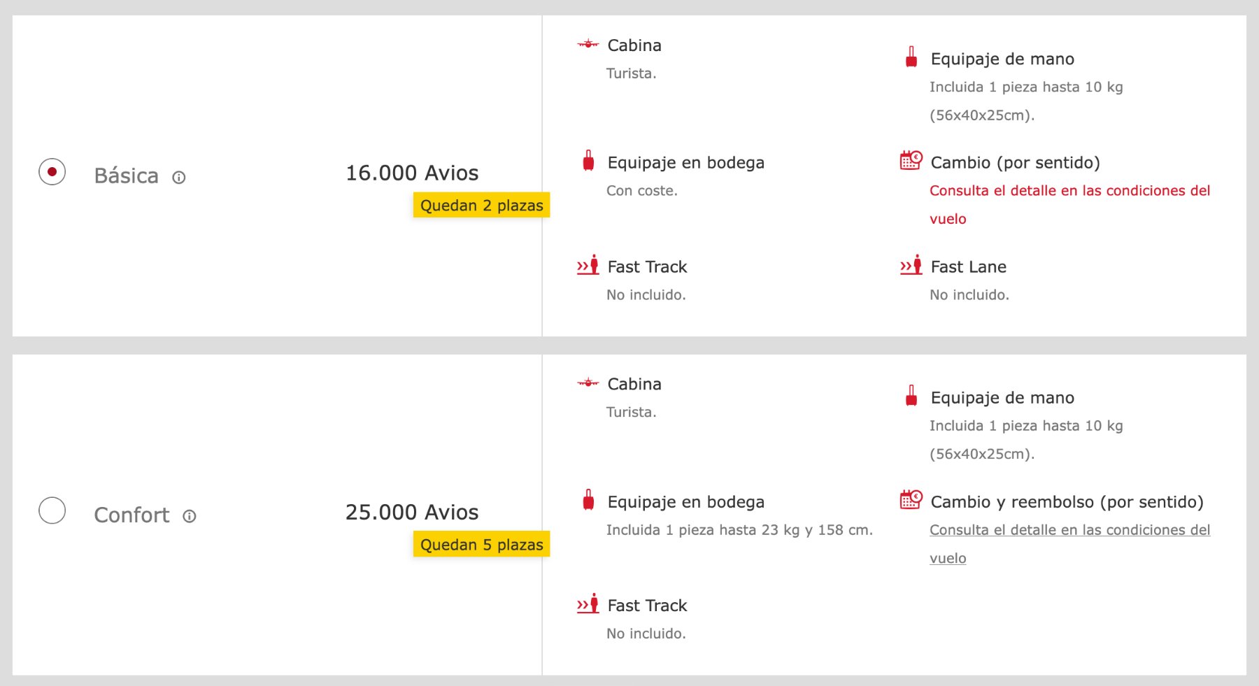 La tarifa Confort es más cara, pero incluye maleta despachada y también cambio o cancelación con una penalidad de 25€
