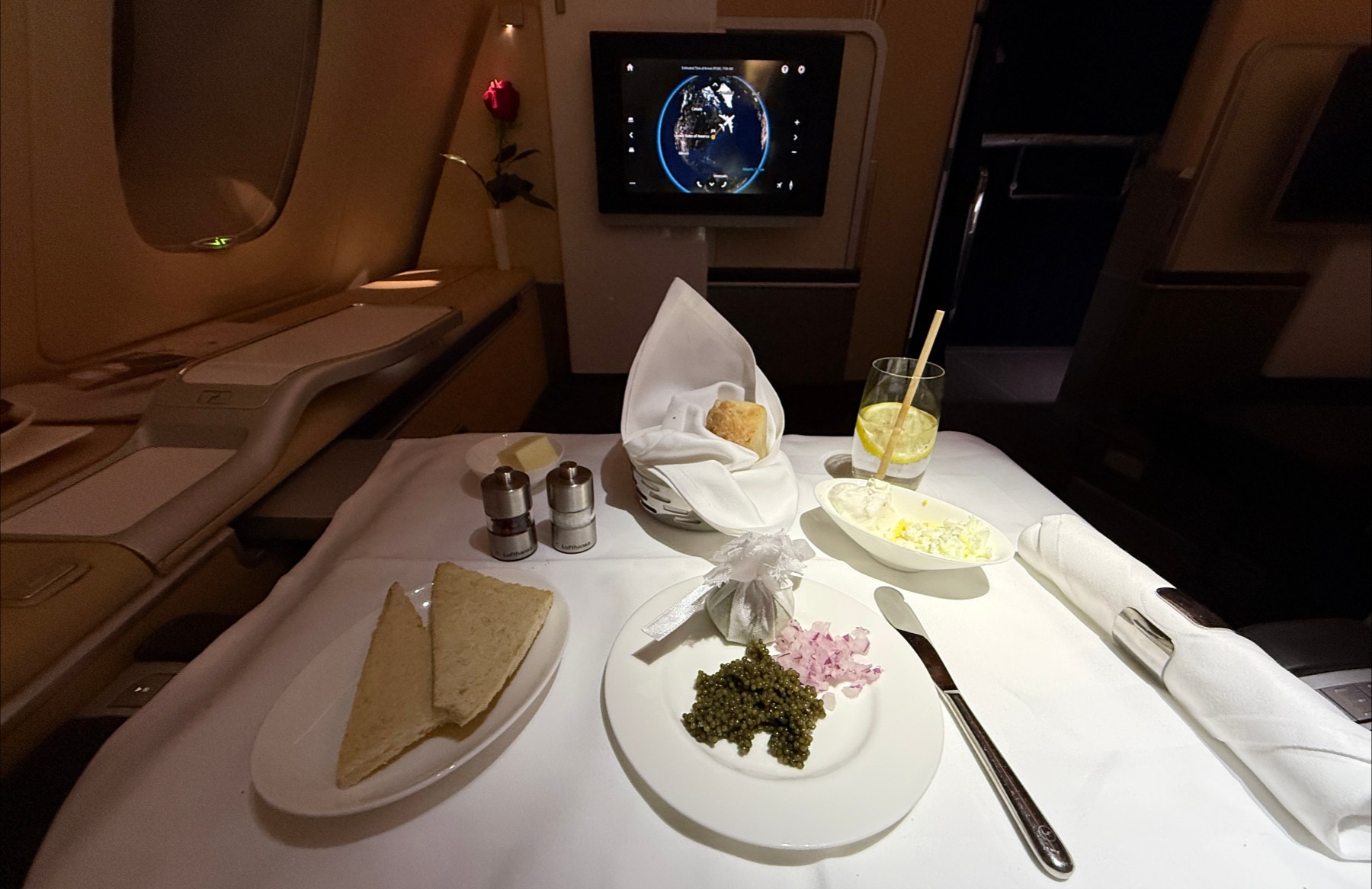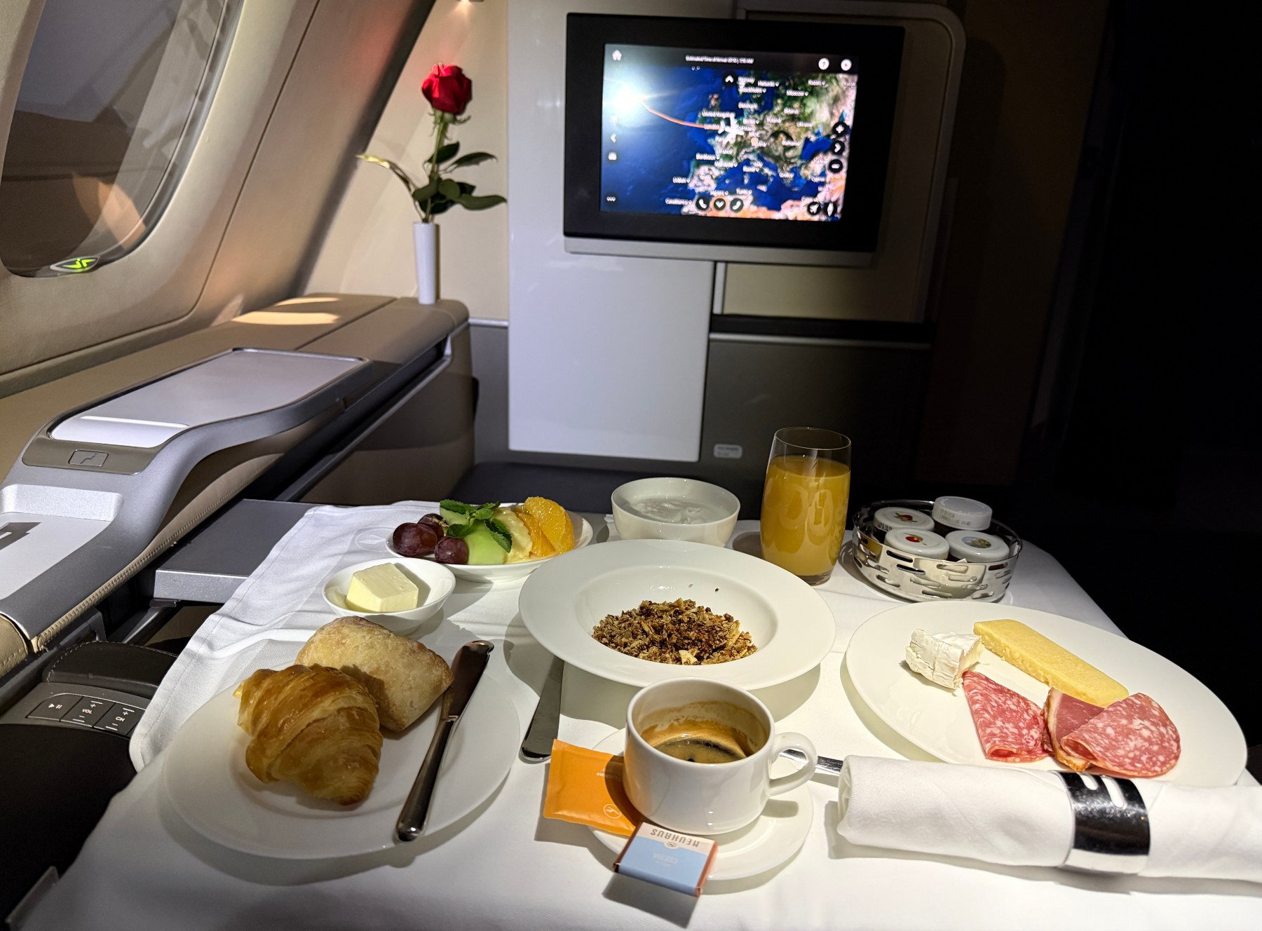Una vez a bordo me acomodé en mi asiento y me entregué a la experiencia Lufthansa.