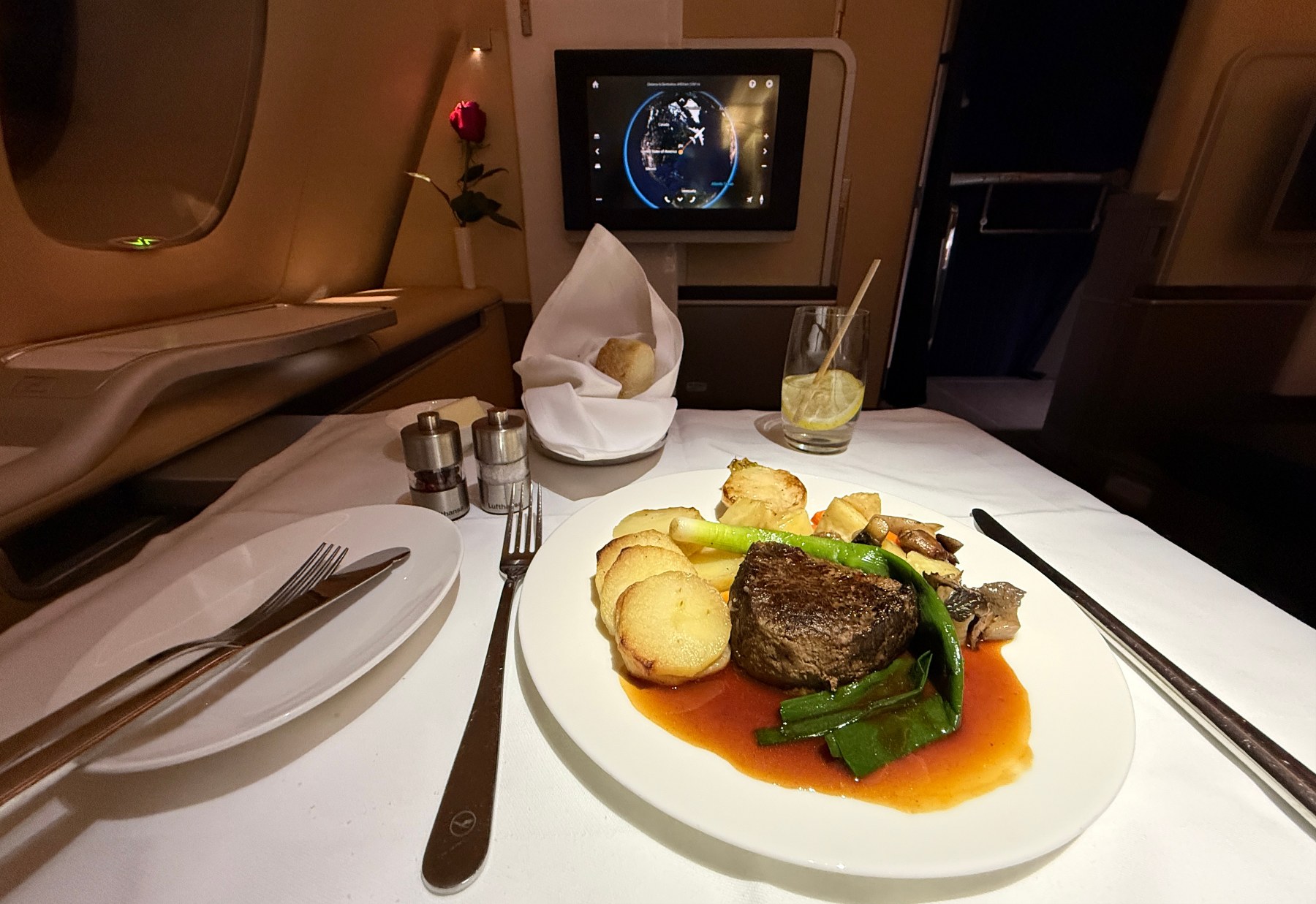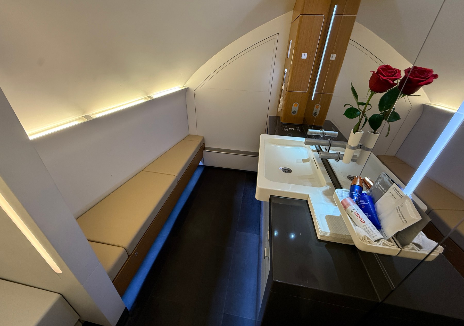 Para el regreso opté por probar la primera clase de Lufthansa en el A380, para poder compararla con la misma del B747-8