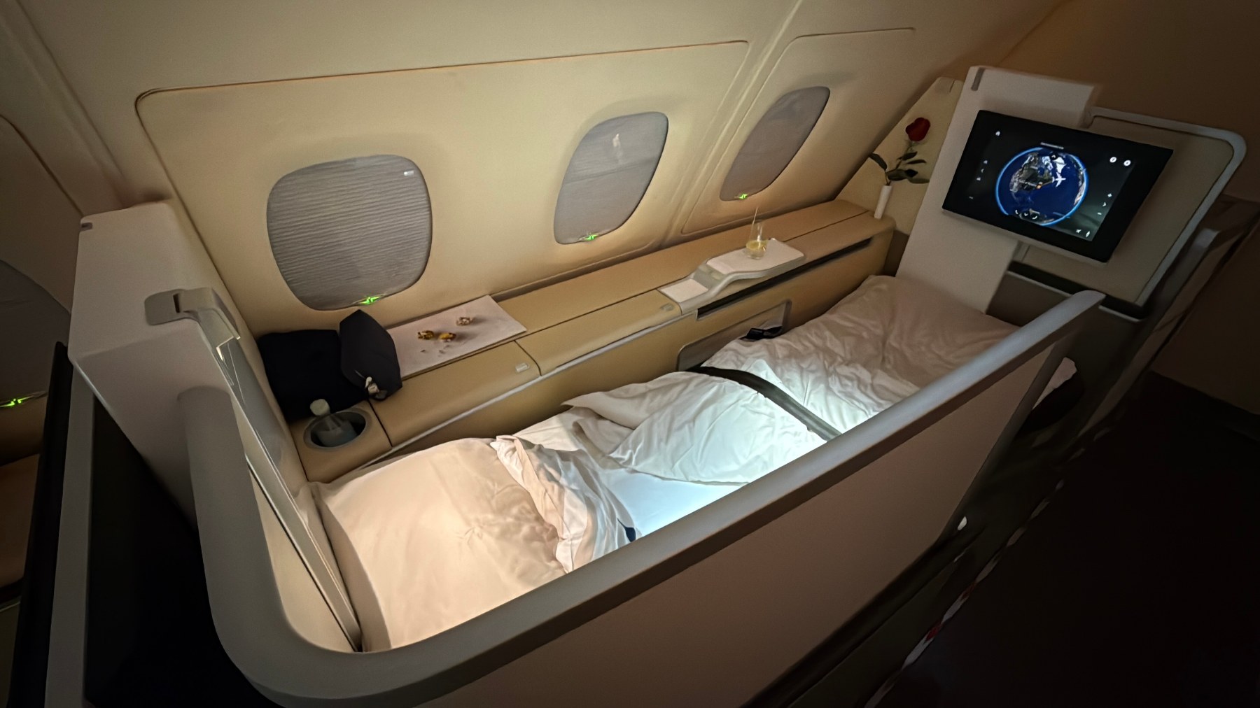 Una vez terminado el servicio la tripulación preparó mi cama para descansar.