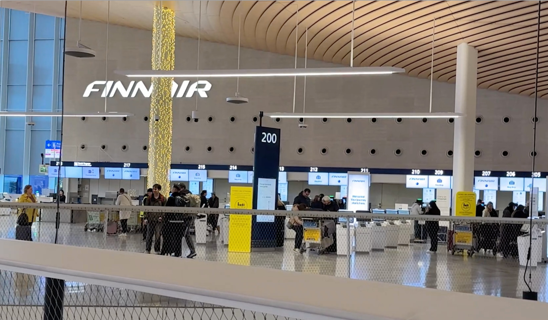El sector de check-in de Finnair es amplio, con muchos mostradores y una infinidad de máquinas para facturar sin necesidad de interactuar con humanos.