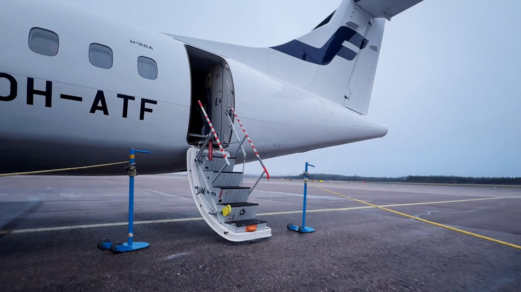 El ATR-72 tiene la particularidad de tener la bodega de equipajes entre la cabina de pasajeros y el cockpit, lo que hace que el embarque solo pueda realizarse por la puerta trasera.