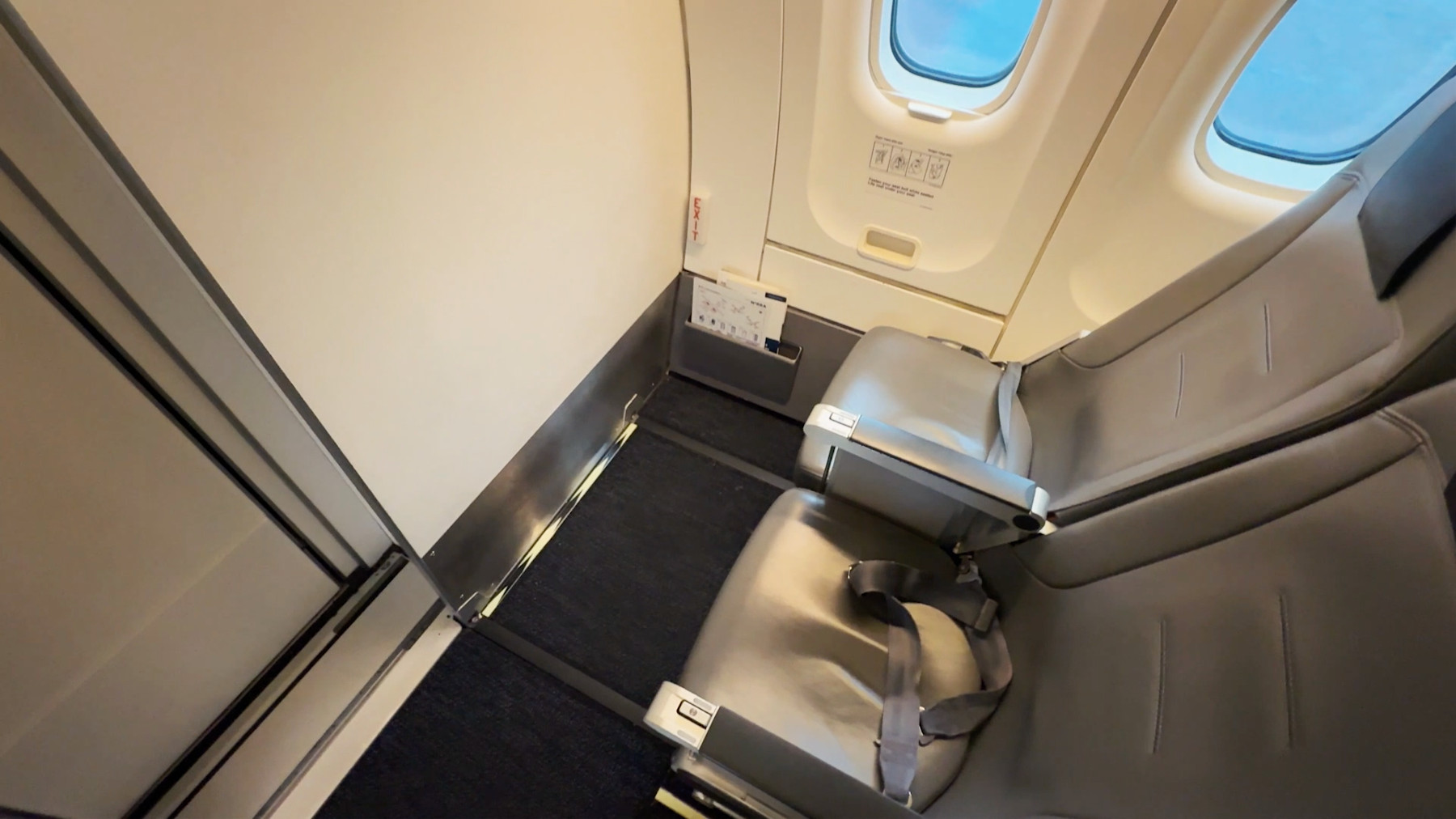 La fila 1 es la mejor de este avión. Es salida de emergencia y ofrece mayor espacio para las piernas que el resto.