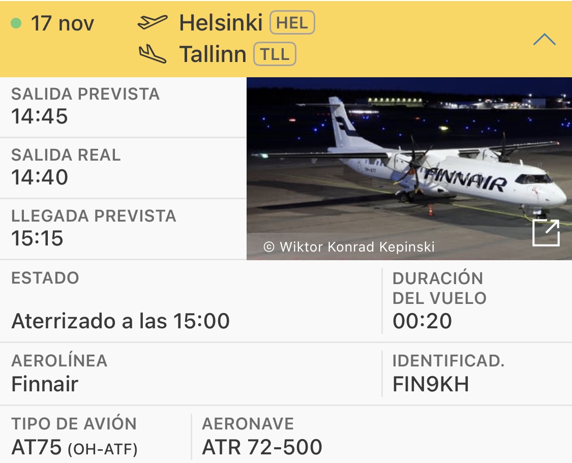 Se trata de la ruta Helsinki-Tallin, un vuelo que une las capitales de Finlandia y Estonia en apenas 20 minutos y además lo hace en un turbohélice: el ATR-72 500